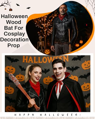 Suitable Size: halloween wood Baseball Bat measures about 27.2 x 1.97 inch/69 x 5 cm, scarf size 70.87 x 35.43 inch/180 x 90cm, Easy to carry, the combination adds to the Halloween atmosphere, you will be a shining presence in the crowd