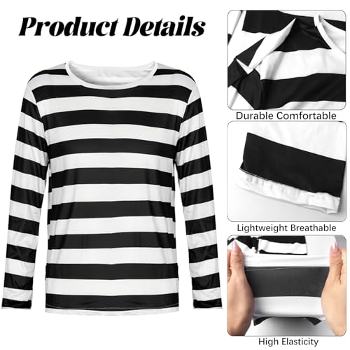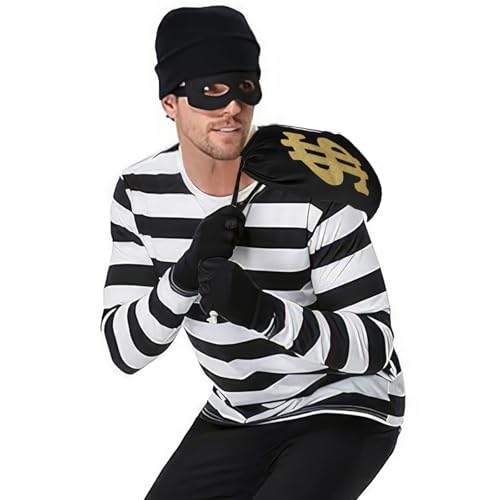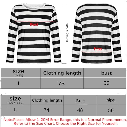 Maazusa Halloween Burglar Couple Costumes for Men Women Black-White Striped Prison Costumes Sleeves Thief Fancy Dress Outfit for Halloween Party