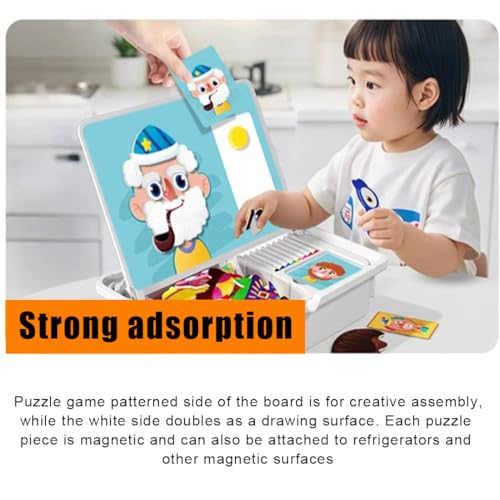 - 【Double Side Magnet Puzzle】 Puzzle game patterned side of the board is for creative assembly, while the white side doubles as a drawing surface. Each puzzle piece is magnetic and can also be attached to refrigerators and other magnetic surfaces