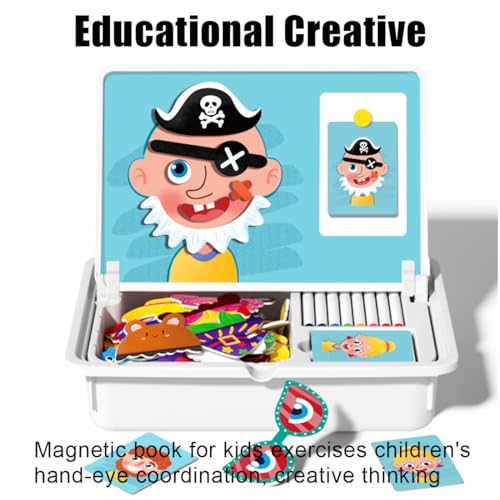 Magnetic Puzzles Face Dress Up Travel Game, Double Side Preschool Educational Learning Toy, Funny Faces Magnetic Fraction Demonstration Book, Create 1,000 + unique Looks, Enhances Creativity (1pc-A)