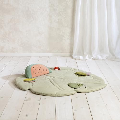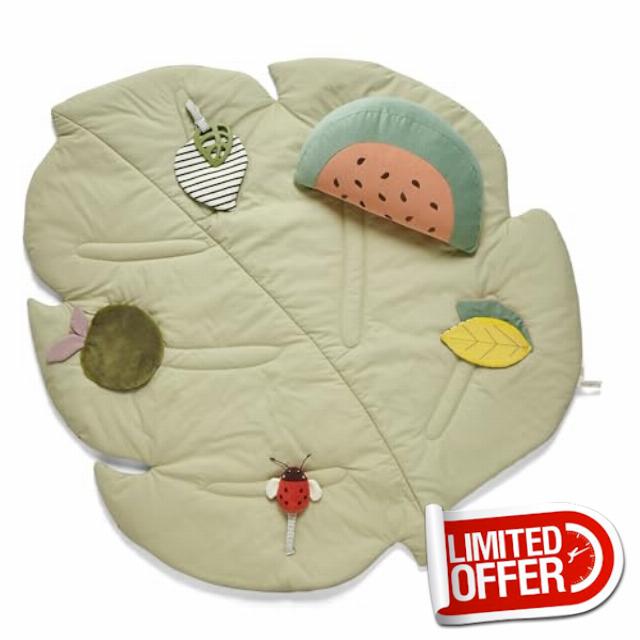Let your little one’s imagination roam with this safari-themed baby play mat. Shaped like a soft jungle leaf, this cosy mat offers tummy time fun and relaxing moments. With tactile fabrics, crinkles, rattles, and squeakers, baby will love exploring new sounds and textures. The adorable watermelon cushion aids tummy time, while the teether provides soothing comfort, making it the perfect playtime accessory.