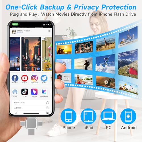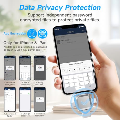 - 【Double Encryption, Privacy Worry Free】The photo stick uses advanced encryption technology and supports password and touch ID dual protection to ensure that your precious photos or important files are worry-free when sharing. You can choose to encrypt a single file or the entire USB drive, which cannot be accessed without authorization, effectively protecting personal privacy and allowing you to use it with peace of mind.