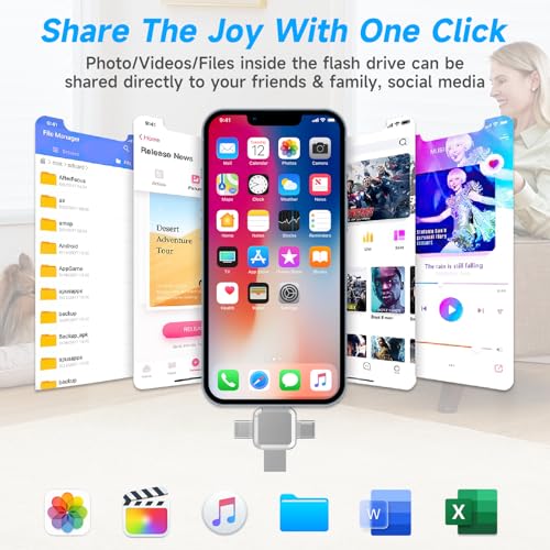 Memory Stick 256GB, 4 in 1 Photo Stick for iPhone, Universal