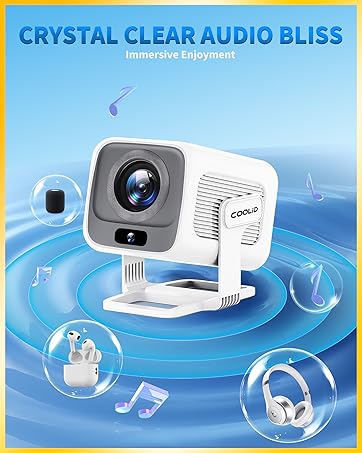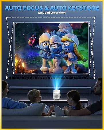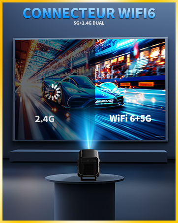 【WiFi 6 and Bi-directional Bluetooth 5.4】 Say goodbye to old HDMI cables. This mini projector is equipped with Bluetooth 5.4 and WiFi 6 technology that operates on the 2.4GHz and 5GHz bands. These cutting-edge features make it easy to connect to a multitude of devices. Two-way Bluetooth 5.4 audio lets you pair with Bluetooth headphones or speakers and enhances the cinema-like audio experience with integrated 360° surround sound. Entertainment made easy.