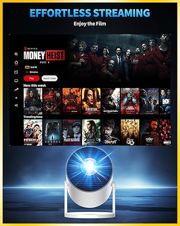 【Smart Projector with Built-in Apps】This 4K projector is powered by Android OS with 1GB of RAM and 8GB of storage for smooth and intuitive use. It supports both mouse and remote control for increased usability. The pre-installed Android TV operating system provides direct access to a wide range of videos, including content from Netf1ix and YouTube, without the need for a separate TV stick. It's easy to create a private cinema in your home.