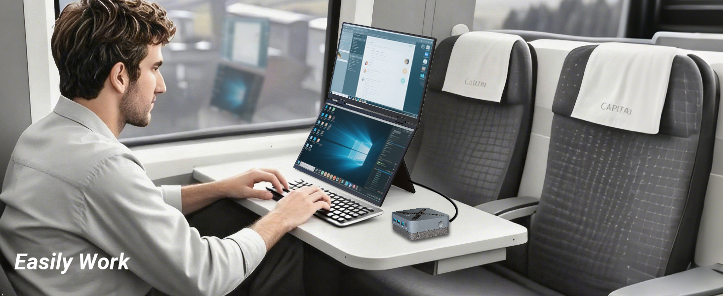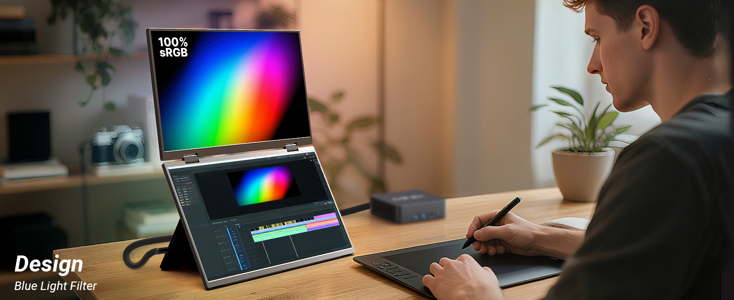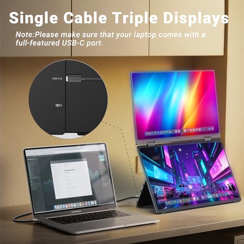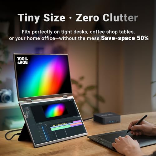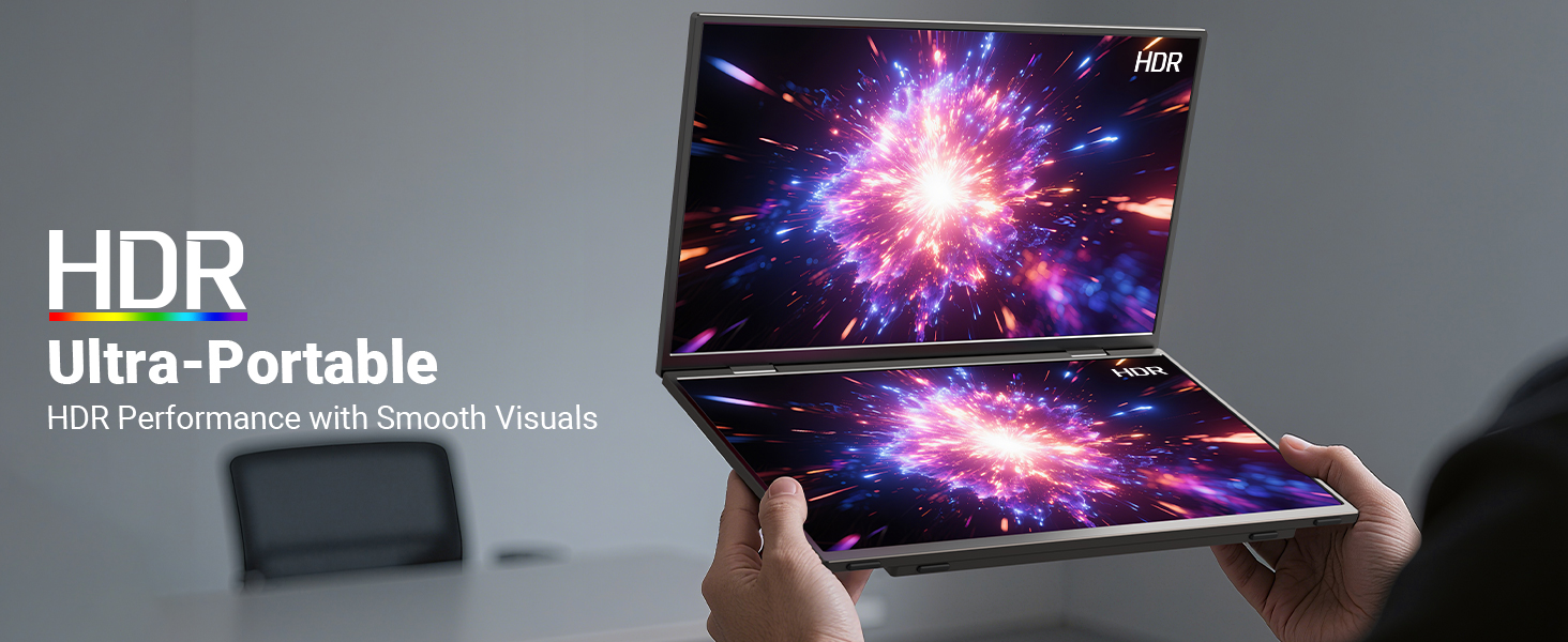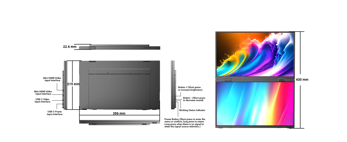 - Tall Canvas & Smarter Workflow: Dual 15.6" 1080P FHD IPS screens (1920×1080, 20-300 nits, 800:1 contrast, 178° wide view) stack vertically to create a taller, more focused workspace. Compare contracts, track dashboards, or code above while debugging below without constant tab switching. HDR technology, Low Blue-Light, and 100% sRGB coverage deliver brilliantly colorful and vibrant visuals that stay sharp in offices, libraries, or cafés