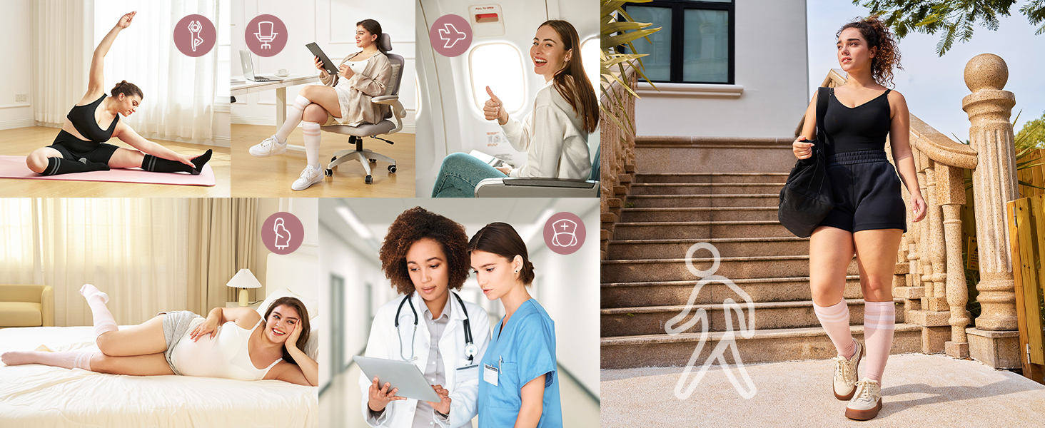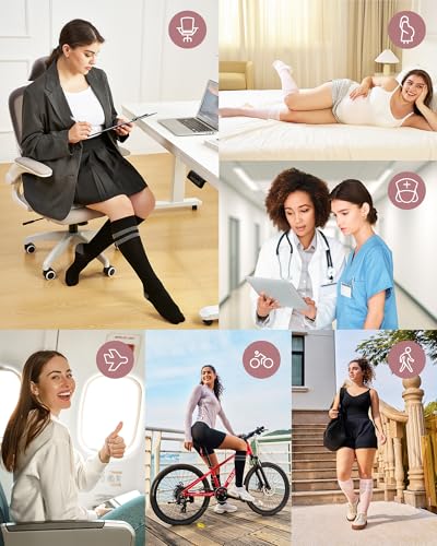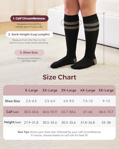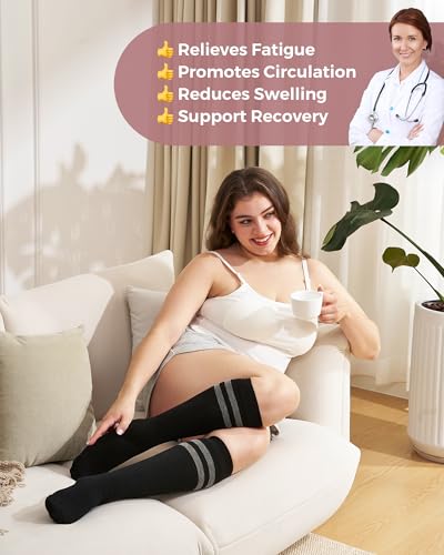 momcozy Compression Socks for Women Wide Calf, 15-20mmHg Knee High Support Socks for Pregnant Woman,2 Pairs