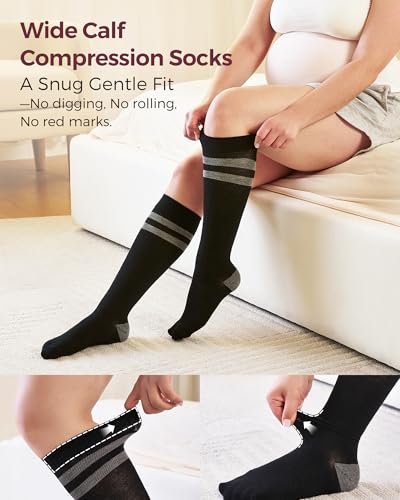 momcozy Compression Socks for Women Wide Calf, 15-20mmHg