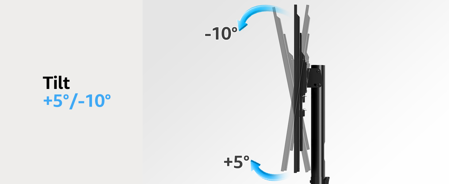 Adjustable Height & Tilt For Optimal Viewing: Custom comfort at every angle! With 2 height options (1456mm-1506mm) and a -10°/+5° tilt function,this tall TV stand eliminates glare and provides the perfect viewing position. Whether you're sitting,standing, or lying down, you can adjust your screen for a more comfortable and immersive experience