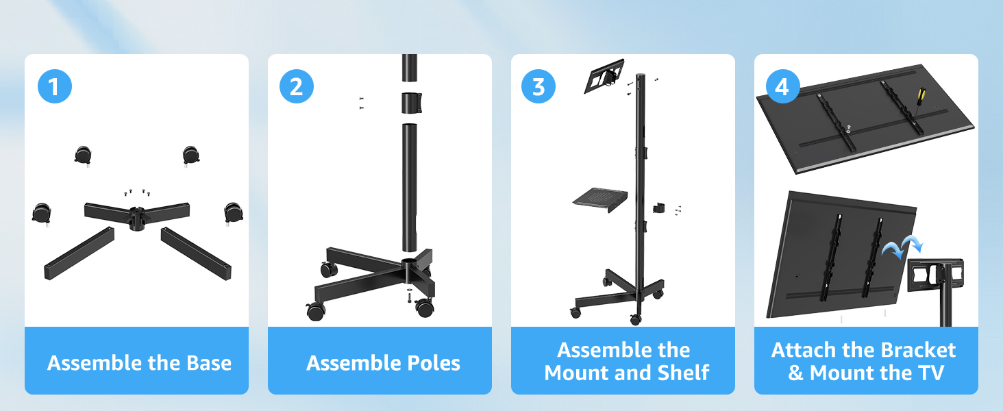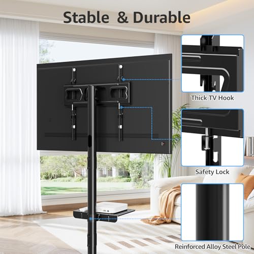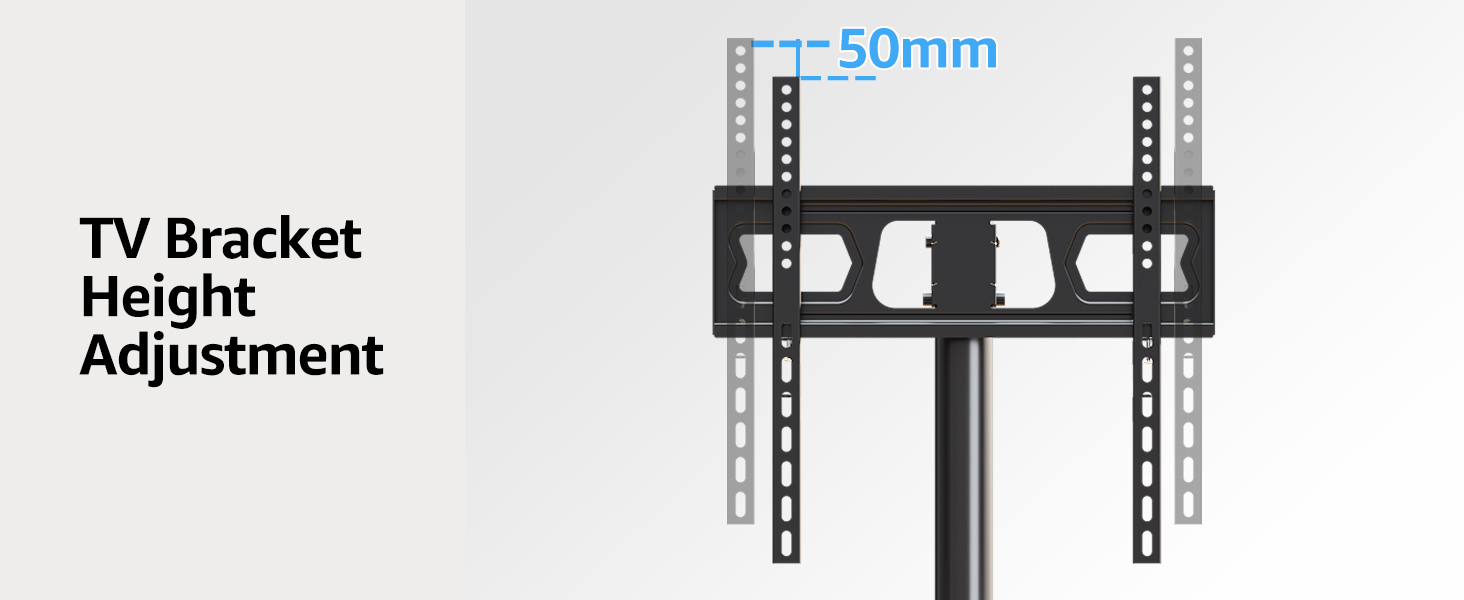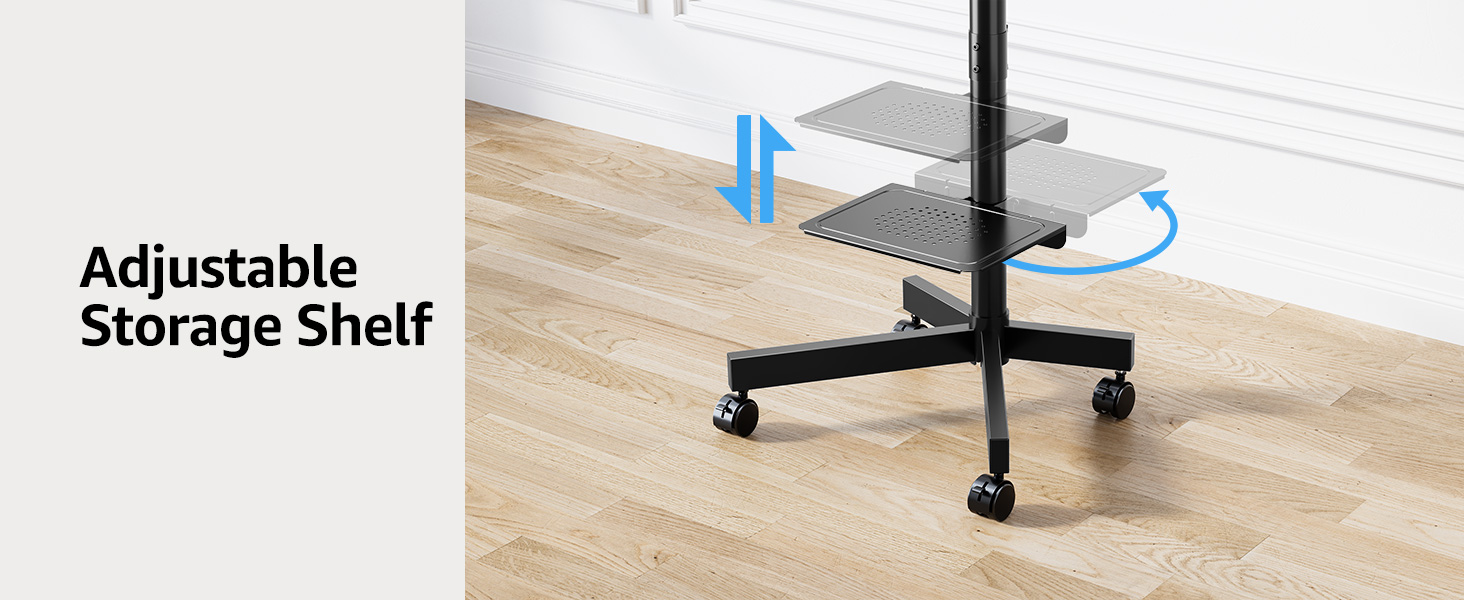 Ultra Strong Floor TV Stand: This portable floor TV stand can withstand 35KG of weight. In terms of pressure-bearing capacity and quality, the use of cold-rolled steel pipes is the best. The thick TV bracket is very strong and will not fall,plus the safety screw is an additional protection for the load-bearing capacity of the mobile floor TV stand