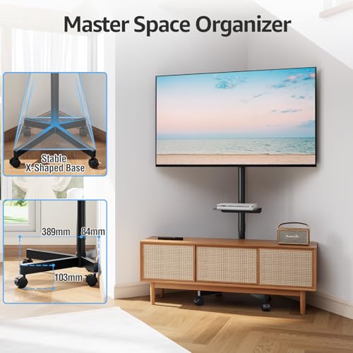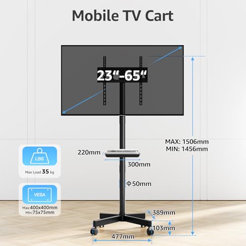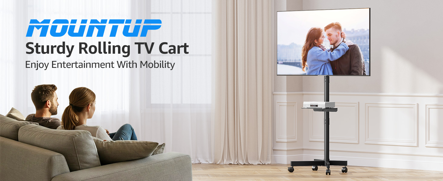 MOUNTUP Mobile TV Stand on Wheels, Rolling TV Cart for 23-65