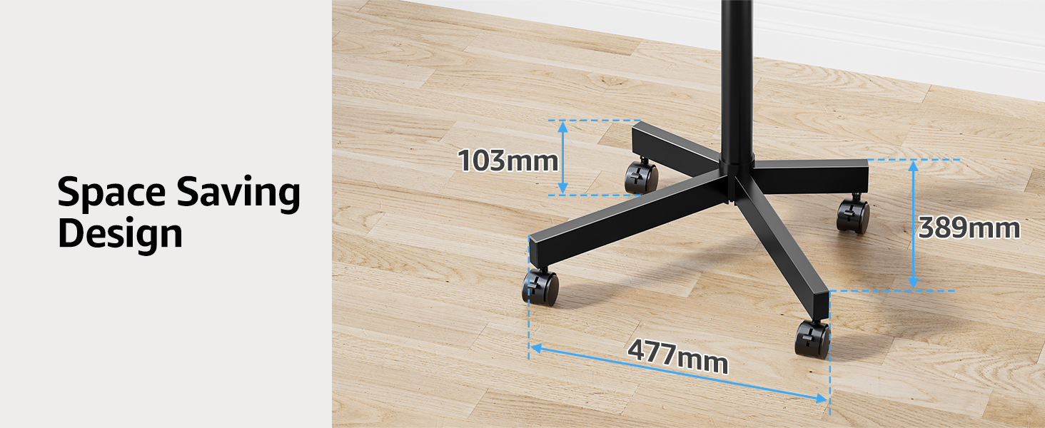Space-Saving & Cable Management: Maximize space, minimize mess! The smart dual-base leg design (front-long,back-short) ensures superior stability while allowing the stand to sit closer to walls—perfect for apartments, dorms, and small spaces. When placed behind furniture,it blends seamlessly into your setup. Built-in cable management keeps cords organized,creating a clean and tidy viewing environment