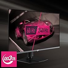 240 HZ REFRESH RATE, 0.03MS RESPONSE TIME – A high 240 Hz refresh rate is complemented by an incredibly low 0.03 ms (GtG) response time for an amazing VESA ClearMR 13000 rating; An elite graphene heatsink (fanless) enhances panel durability