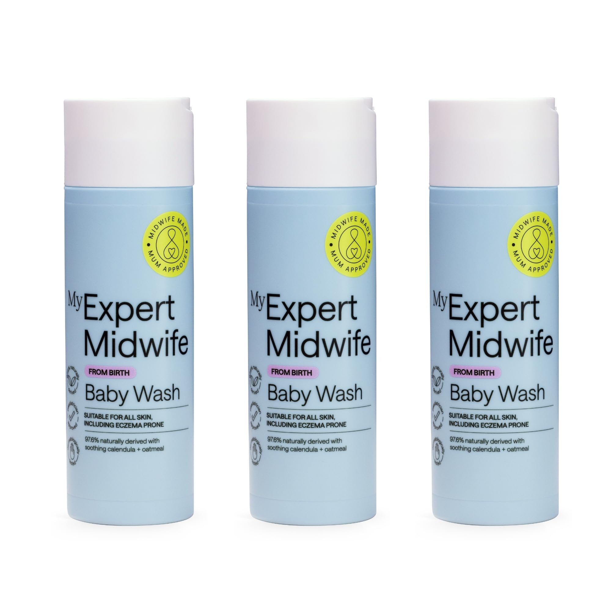 My Expert Midwife Baby Cleansing Wash, Newborn Bath & Body Wash, Sensitive Skin + Fragrance Free, Dematalogically Tested, Pack of 3