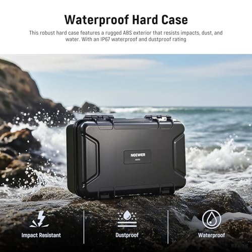NEEWER Hard Case Compatible with DJI Osmo Action 5 Pro / 4/3 Camera, IP67 Waterproof Dustproof Shockproof Portable Travel Storage Case with Custom Foam Inserts & 12 Slots for Accessories, AC031