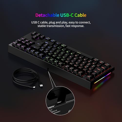 wired mechanical gaming keyboard 75% percent black keycaps uk layout tkl mini small rgb led backlit compact usb c pc laptop mac windows hot swappable 88 keys ergonomic portable red switches light up custom computer keyboards