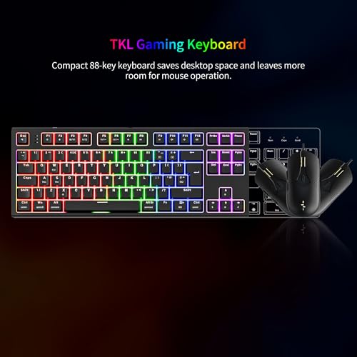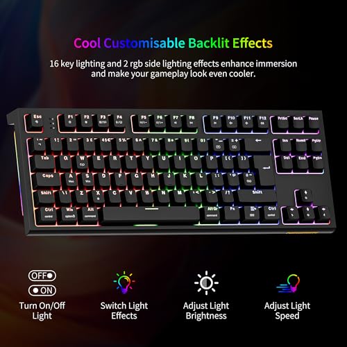 - Compact TKL Keyboard: The wired gaming keyboard with an 88-keys 75% layout and no numeric keypad. The tkl mechanical keyboard saves more desk space and provides a larger movement area for your mouse. The black keycaps feature a UK QWERTY layout, better suited to your usage habits. Despite its small size, the 75% percent keyboard retains the essential functions of a full-sized led keyboard and can be used for game or work. It is perfect for gamer, office work, home typing, business trips, and travel.