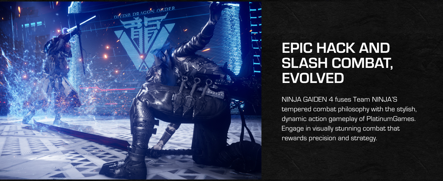 - NINJA GAIDEN 4 fuses Team NINJA'S tempered combat philosophy with the stylish, dynamic action gameplay of PlatinumGames. Engage in visually stunning combat that rewards precision and strategy.