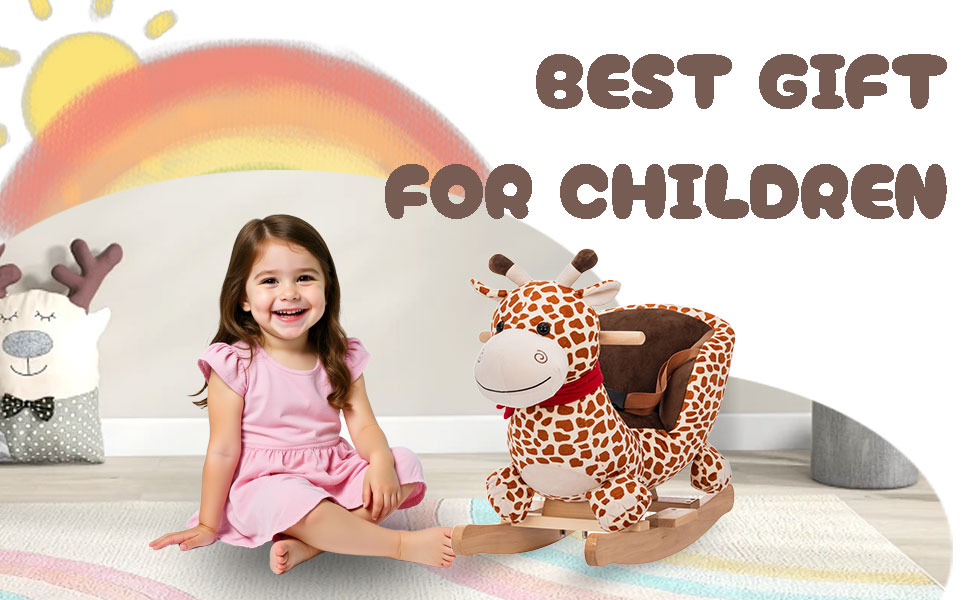NINODOVAE Kids Rocking Horse Giraffe Stuffed Animal Wooden