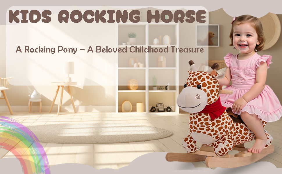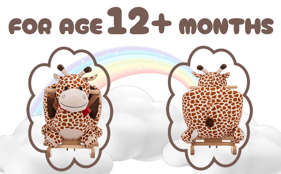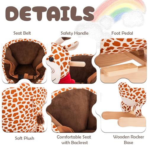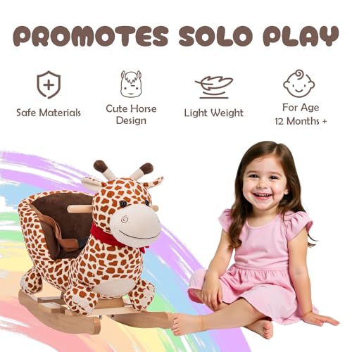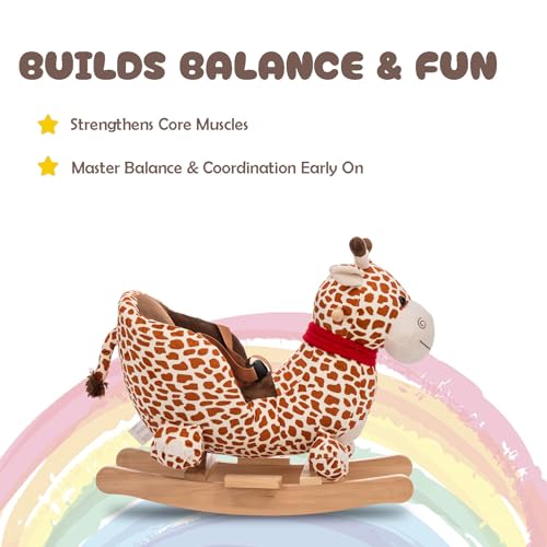 NINODOVAE Kids Rocking Horse Giraffe Stuffed Animal Wooden Rocker for Children 12 Months Boys and Girls/Nursery Christmas, Birthday Gif