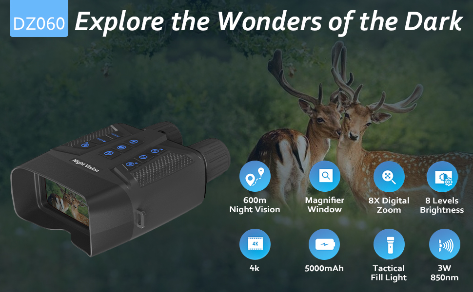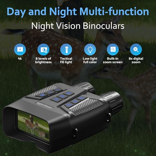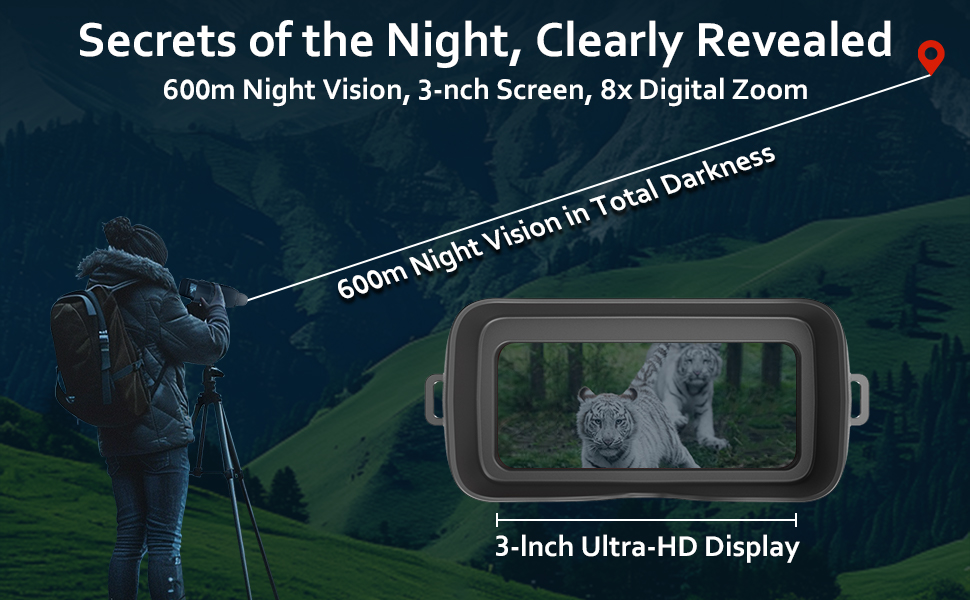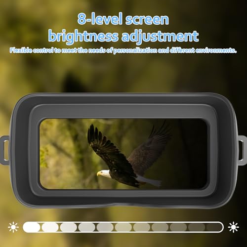 3-inch Screen: This night vision binoculars is with the 3'' clear screen.It featured with excellent optical clarity,The 8-level adjustable brightness allows you to watch animals/plants clearly within 1968ft in totaly darkness.Easily adjust the brightness for discreet operation and clear visibility in both day and night settings.
