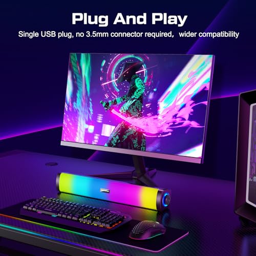 - Crystal-Clear 52mm Metal Sound Drivers-Featuring dual robust metal diaphragm speakers, these computer speakers deliver 20W distortion-free audio with zero buzzing. Engineered noise-cancellation tech ensures crisp highs and deep bass – brilliant for gaming marathons, movie nights, or blasting tunes. Unlike tinny PC speakers, our soundbar offers studio-grade acoustics even at max volume!