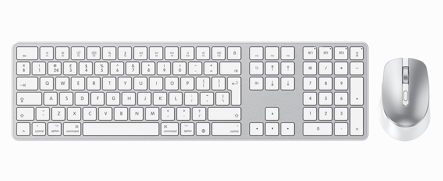 OMOTON Wireless Bluetooth Keyboard Mouse Rechargeable for Mac OS, Wireless Keyboard and mouse Set for MacBook Air/MacBook Pro/iMac, Multi-Device Ultra Slim, Quiet Typing, QWERTY UK Layout, Silve