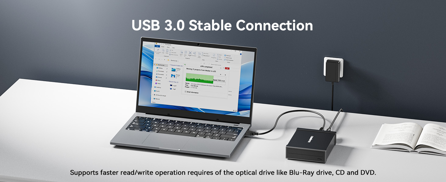 【Up to 5Gbps】This dvd case equips with USB 3.0 output interface.Transfer 1G files in 3-5 seconds with USB 3.0 Ports, which is 10 times faster than USB 2.0.