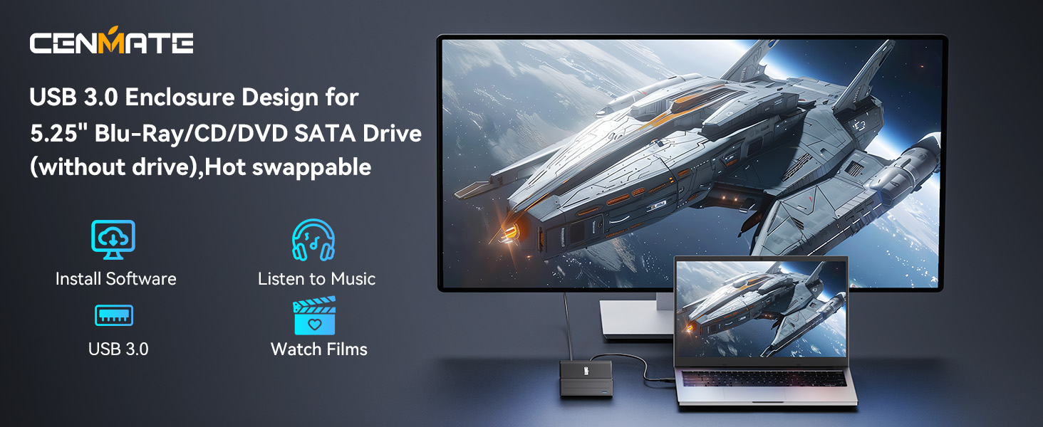 Optical Drive Enclosure for 5.25″ Blu-Ray/CD/DVD SATA Drive
