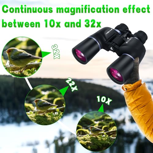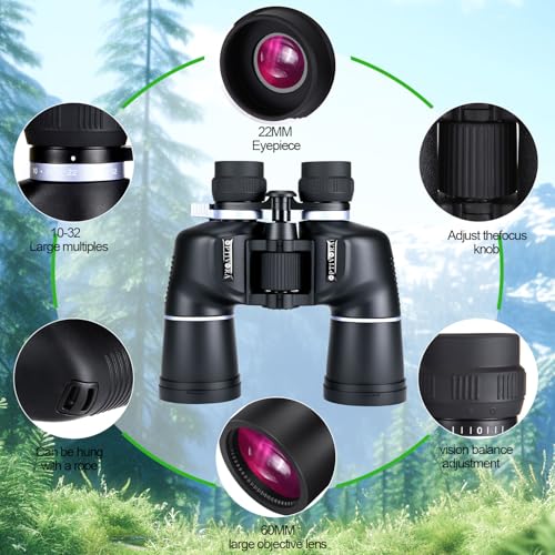 - [Binoculars for Adults]High powered binoculars with 10-32x magnification design,with 60MM large objective lenses,allows you to clearly observe things at different distances,it is a great choice for star gazing binoculars,binoculars for plane spotting,bird watching binoculars and other travelling binoculars.