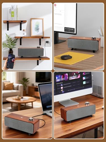 - 【Natural and Clear Sound from Wooden Cabinet Design】 Crafted with a high-quality wooden enclosure, this speaker not only looks elegant but also delivers superior acoustics. The wood housing helps reduce unwanted vibrations, resulting in a warm, natural tone and crystal-clear sound. A perfect blend of performance and aesthetics. ️【Space-Saving Soundbar Design for Desks and TV Stands】 Designed with a slim, horizontal soundbar form factor, this speaker fits neatly under monitors, TVs, or on bookshelves. Ideal for compact workspaces or minimalist setups, it provides powerful audio without taking up unnecessary space.