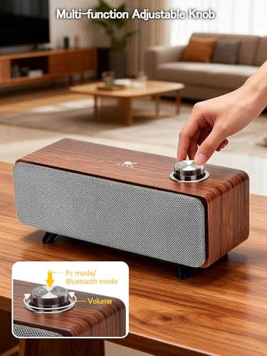 - ️【Versatile Control with Multi-Function Knob】 Equipped with an intuitive multi-function control knob, this speaker lets you fine-tune volume, switch audio sources, and customize sound settings with ease. Whether you're working, relaxing, or gaming, you can adjust the sound to match your environment or mood.