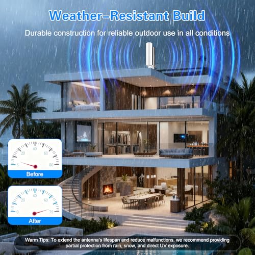 - Durable Weather-Resistant Design: Built with high-quality materials, this outdoor 5G antenna is lightweight yet robust, suitable for year-round use. When mounted in a suitable position and height(Size: 23 X 6.5 X 6.5cm), it can help improve reception where standard antennas struggle, providing more stable and dependable connectivity across your network devices.