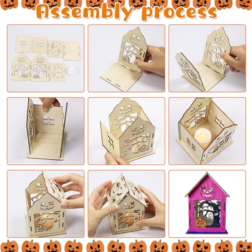 - High Quality Material The Halloween lanterns craft kit is made of high quality wood, durable and unbreakable, with smooth edges. It is pre-cut and slotted without tools required, perfect for allowing children to make a safe Halloween house crafting