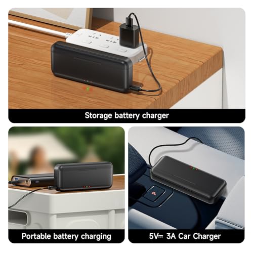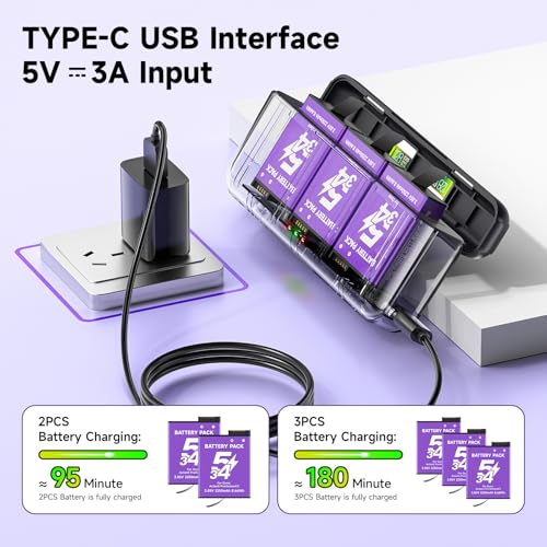 - 【Compact and Portable】This compact and lightweight charger can store 3 batteries and 2 TF cards, which protects the batteries from dust and dirt and keeps them from scratches and damage, and the small and exquisite charger set can be pocket-sized, which is convenient for you to carry it on the go.