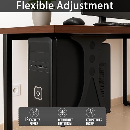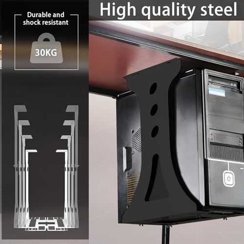 Pc Bracket, Stainless Steel PcBracket Under Desk Black PcHolder Under Table U-Shaped Pc Wall Bracket Space-Saving Width Adjustable 15-25 Cm Height 47cm Up To 30 Kg For Most Hosts