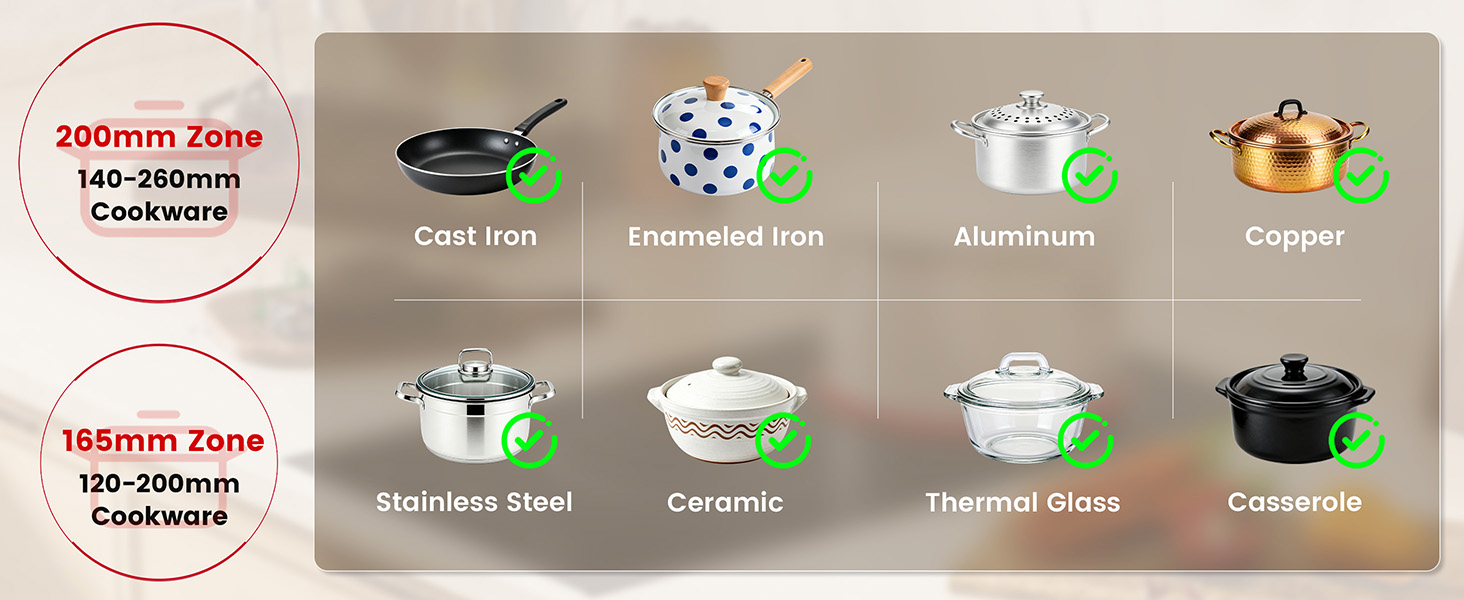 Wide Cookware Compatibility & Quiet Operation – Unlike induction hobs, this ceramic hob works with almost all cookware—iron, stainless steel, copper, aluminum, glass, and ceramic pans. It heats quietly without fan noise, creating a calm kitchen environment.