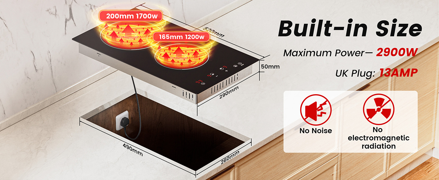 Modern Design – Durable & Easy to Clean.The sleek black ceramic glass surface is scratch-resistant, stain-proof and easy to clean. Its built-in design adds a modern, stylish touch to your kitchen while ensuring long-lasting durability.