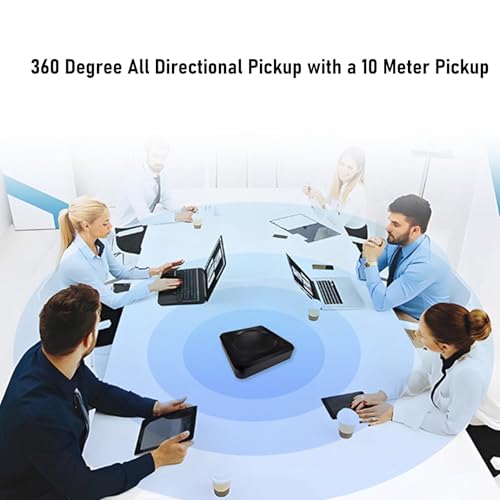 - Enhanced 360 Degree Voice Pickup: The conference USB microphone features a 6 mic array, capturing sound within a 10 meter diameter, providing full omnidirectional sound pickup.