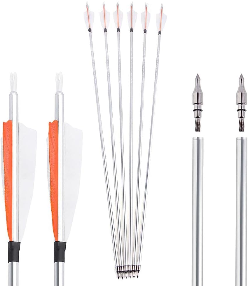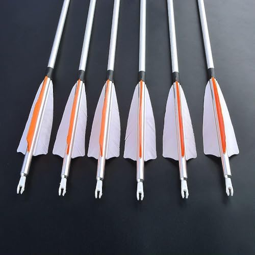 Poearcus Archery Aluminium Arrow 30 Inch Hunting Arrow with 4 Inch Turkey Feathers 500 Spine Target Practice Arrows for Compound Bow Recurve Bow