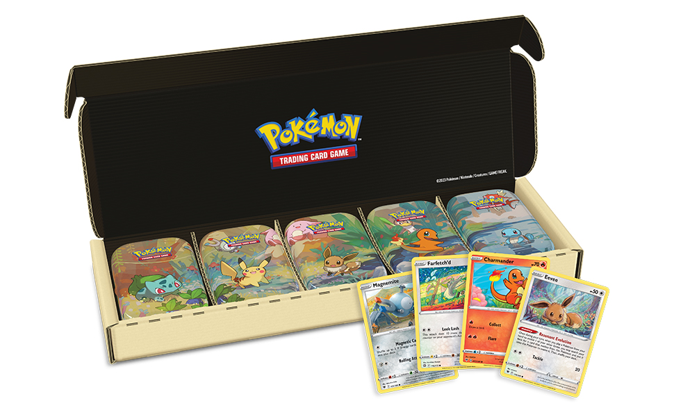· In this Mini Tin bundle, you’ll find 5 Kanto Friends Mini Tins featuring adorable images of Pikachu, Bulbasaur, Charmander, Squirtle, and Eevee!