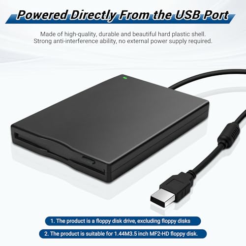 Features:”【Wide Compatibility – Portable Floppy Disk Drive for Data Access】 Easily read, write, and transfer data from your old 3.5-inch floppy disks with this portable floppy disk drive. Designed for nostalgia and data recovery, it’s perfect for accessing archived documents, vintage software, or treasured family photos stored on floppy disks. Compatible with Windows 10 / 8 / 7 / Vista / XP / ME / 2000 / SE / 98″ “【USB Interface – Plug and Play Convenience】 Simply connect the portable floppy disk drive to your computer’s USB port and start using it instantly—no extra drivers or external power needed. Supports USB 1.1 / 2.0 / 3.0 for smooth data transfer. For best performance, plug directly into your computer’s rear USB port to ensure stable power and reliable operation.” “【Lightweight and Portable Design】 With its ultra-slim and lightweight build, this USB external floppy disk drive is easy to carry in your laptop bag or store in a desk drawer. Ideal for both home and office use, whether you’re working on a desktop, laptop, or moving between locations.” “【Reliable Performance – Stable and Interference-Resistant】 Built with high-quality components for consistent performance, the portable floppy disk drive ensures quick data reading while minimizing errors. Strong resistance to electromagnetic interference provides a stable connection for accurate file transfers.” “【Perfect Solution for Legacy Media Users】 As most modern computers no longer include built-in floppy disk drives, this external USB 3.5-inch floppy disk drive is the perfect solution for engineers, researchers, archivists, and retro-computing enthusiasts. Bring your floppy disks back to life and relive the classic clicking sound of the drive while recovering valuable data.”