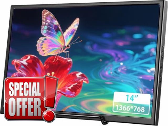 14 inch Small Portable Monitor : TFT screen with HD 1366×768 resolution can provide an excellent picture quality. It also delivers a 160°wide viewing angle which gives it a true to life image with incredible details and sharp clarity.