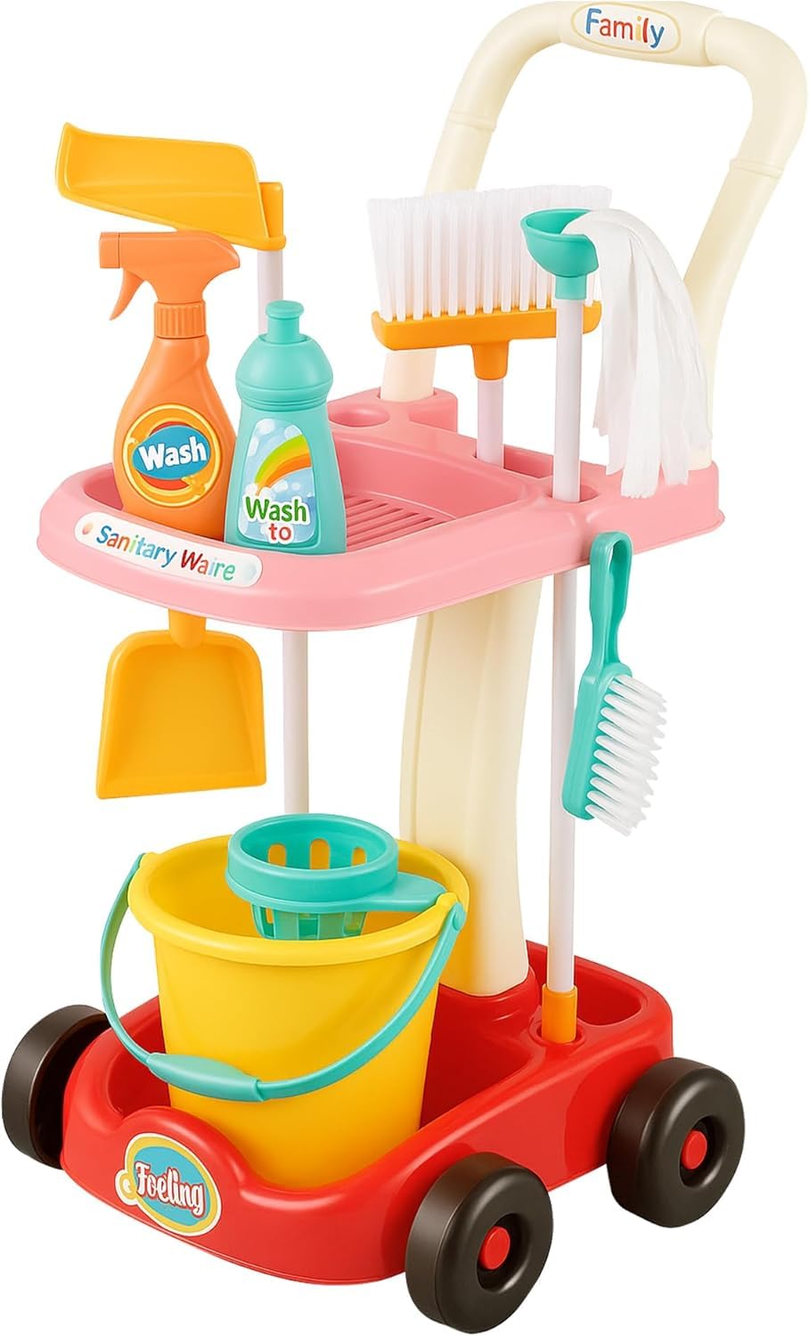 - EDUCATIONAL AND SKILL-BUILDING TOY – Beyond fun, this cleaning trolley set is an excellent educational tool. It helps children develop fine motor skills, hand-eye coordination, and organizational abilities. By pretending to clean, kids also learn life skills like responsibility, teamwork, and problem-solving, making it both entertaining and educational.