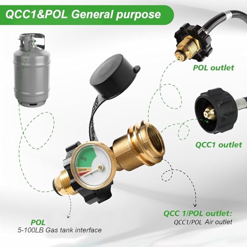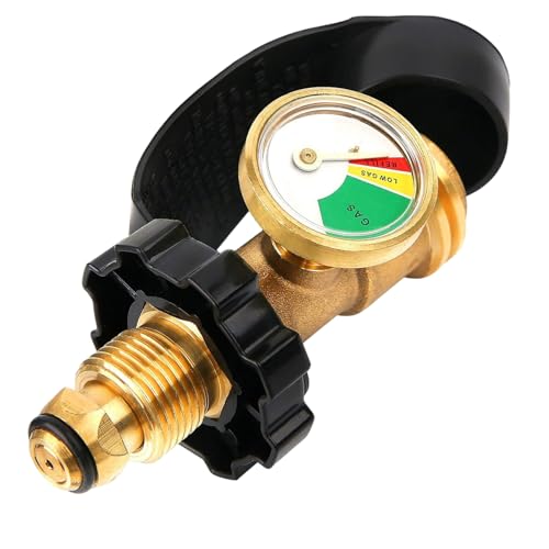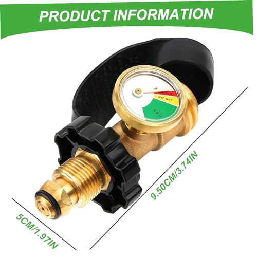 Propane Tank Gauge, Heavy-Duty Propane Tank Gauge Level Indicator with Color-Coded Dial, Metal Comprehensive Adapter for BBQ Gas Grill Cylinder is a reliable, accurate propane gas gauge designed for various propane tanks including BBQ grills and RV cylinders; with its heavy-duty metal construction and multiple adapter, it offers long-lasting strength and easy installation, while the large, color-coded dial provides quick, clear propane level readings to help users avoid running out of fuel unexpectedly and maintain safety and convenience during outdoor activities.