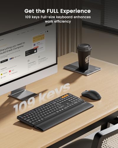 - 【Ergonomic Wrist Support】Designed for long hours of typing, the wireless keyboard features a non-detachable wrist rest that ensures stability and prevents shifting during use—ideal for a long-term, fixed workstation. Paired with a lightweight wireless mouse that adopts a handshake angle, the combo further relieves wrist pressure for convenient, comfortable use.
