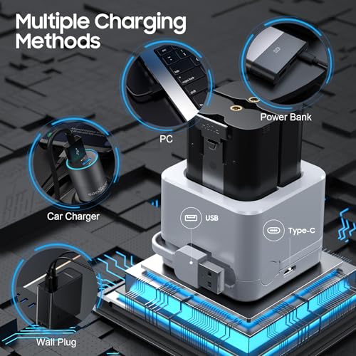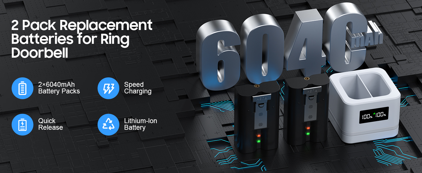 Quick Release Battery for Ring – 2 Pack with White LED Digital Charger Station,3.65V 6040mAh Rechargeable Battery, for Ring Doorbell Camera 2/3/3+/4, Spotlight Cam(2nd/3rd Gen) and Stick Up Cam
