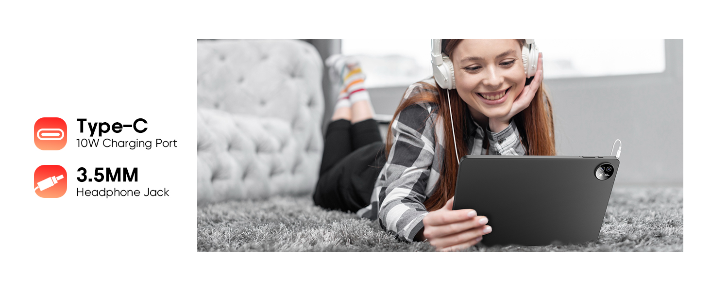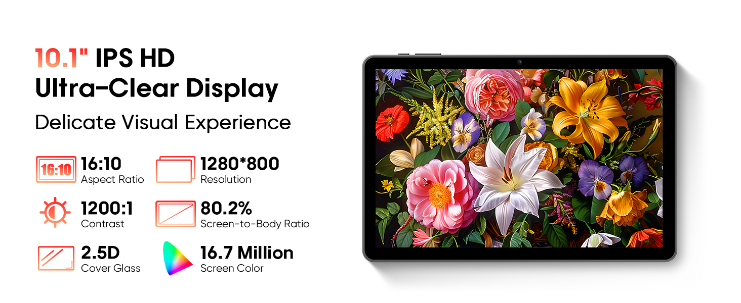 [10.1 Inch Display + Widevine L1] The tablet with a 10.1 inch 1280*800 IPS display, providing a realistic visual experience with clear details. Using IPS Incell fully laminated display technology, the screen is clearer, richer in color, and also provides a wider viewing angle. Effectively filters harmful blue light, reduces eye fatigue and irritation, and protects your vision health.