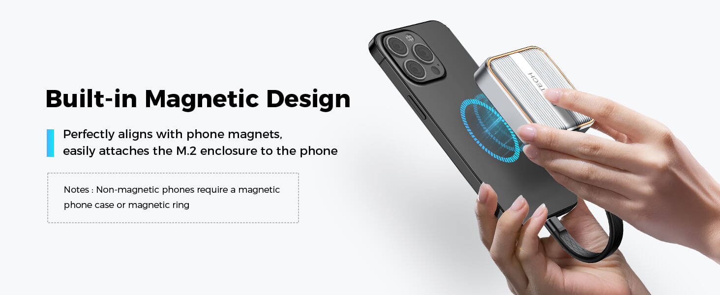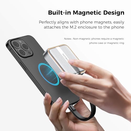 - Powerful Magnetic & Storage Expansion: RSHTECH NVMe SSD Enclosure features a built-in magnetic structure for instant, secure attachment and perfect alignment with MagSafe-compatible devices like iPhone 15/16 Pro Max. For non-MagSafe phones, simply use a magnetic case or ring for full compatibility. Connect an SSD to externally record 4K ProRes video—say goodbye to smartphone storage limits and transform your device into a professional filming tool