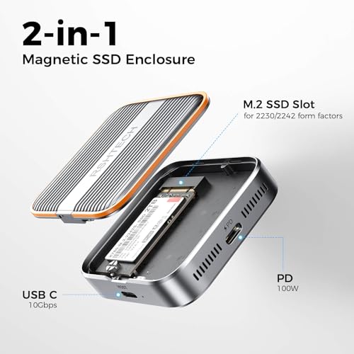 RSHTECH Magnetic M.2 NVMe Enclosure, Aluminum 10Gbps USB-C 3.2 External SSD Enclosure with 100W PD for iPhone 17/16/15 Pro Max, laptops, Tablets(RSH-M10M)